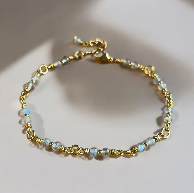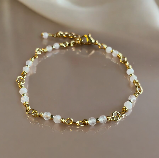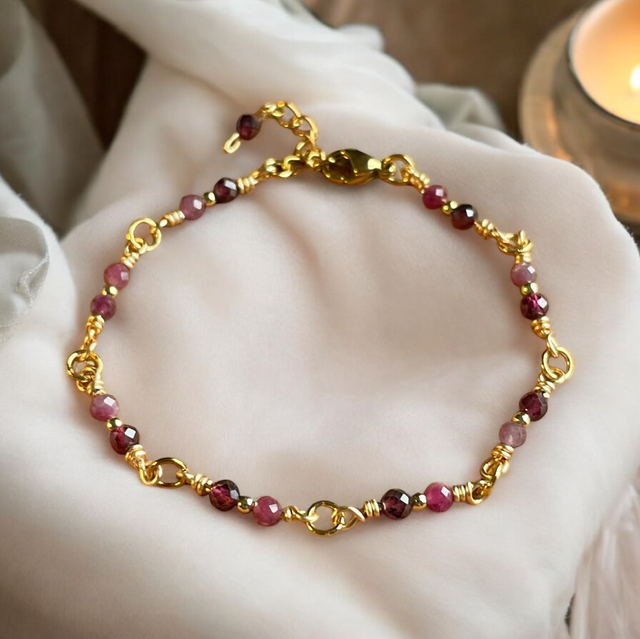 "Bracelet Femme Chaîne & Perles Naturelles Facettées"