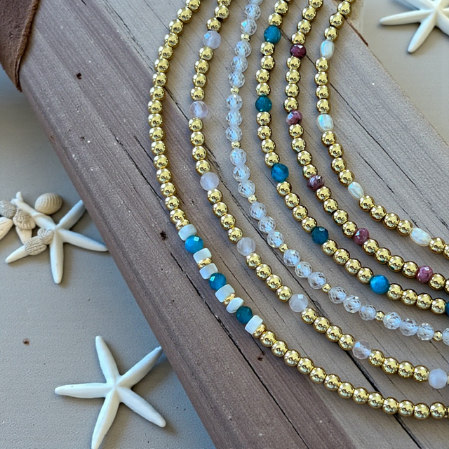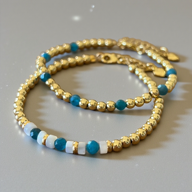 Un bracelet délicat et élégant, fait main, alliant le raffinement du laiton plaqué or 18 carats à la beauté des perles naturelles. Disponible en cinq versions pour s’adapter à vos envies et votre style :