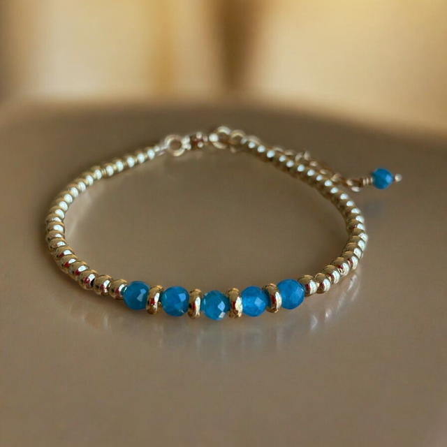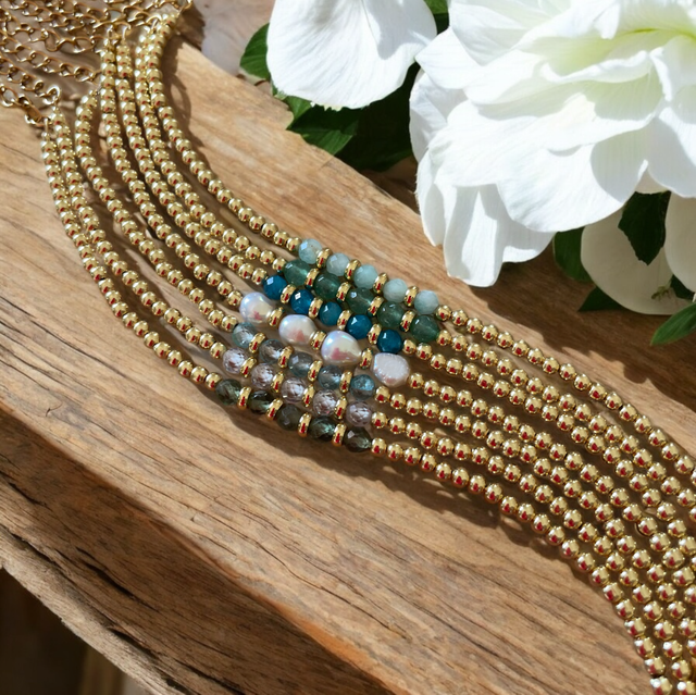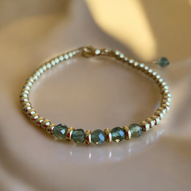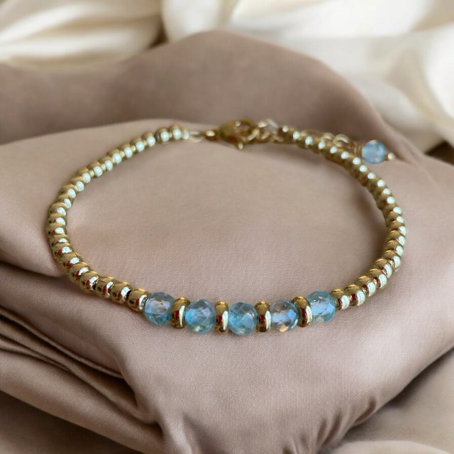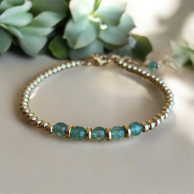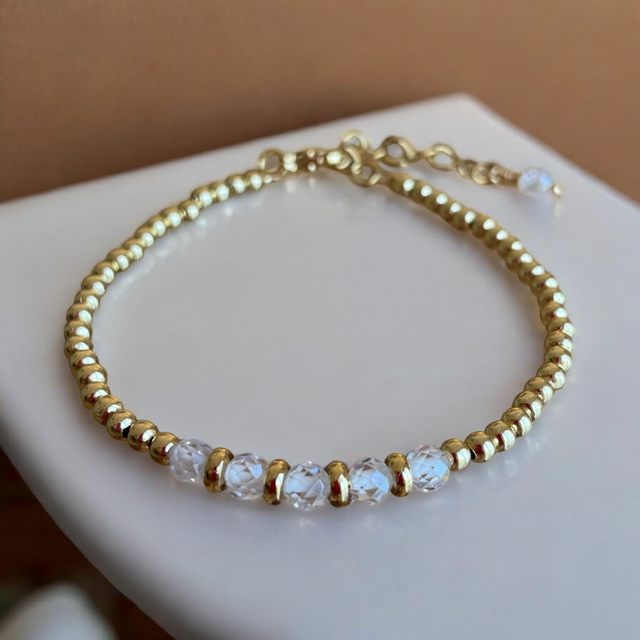 Bracelet femme en pierres naturelles et laiton plaqué or 18K