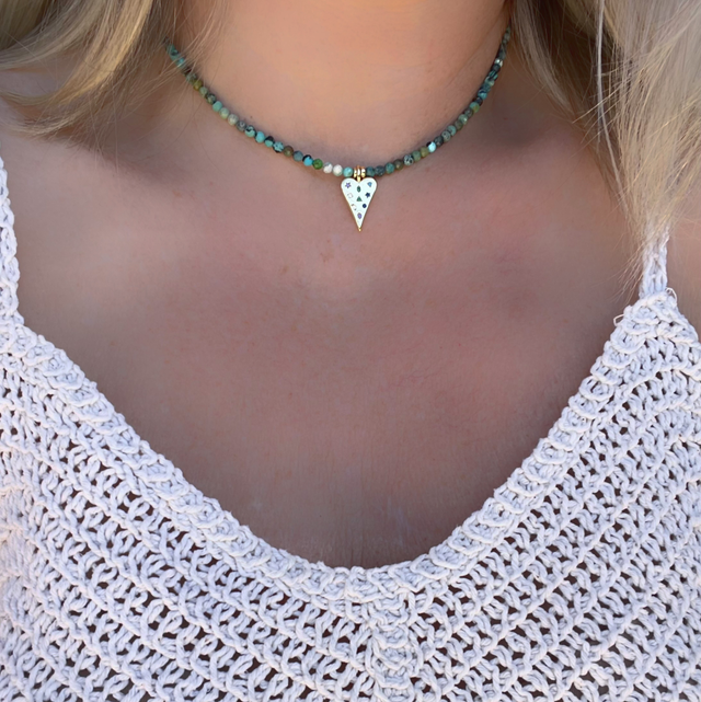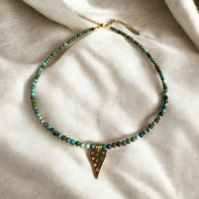 Collier Aurea Cœur – turquoise africaine & cœur micropavé CZ – fait main