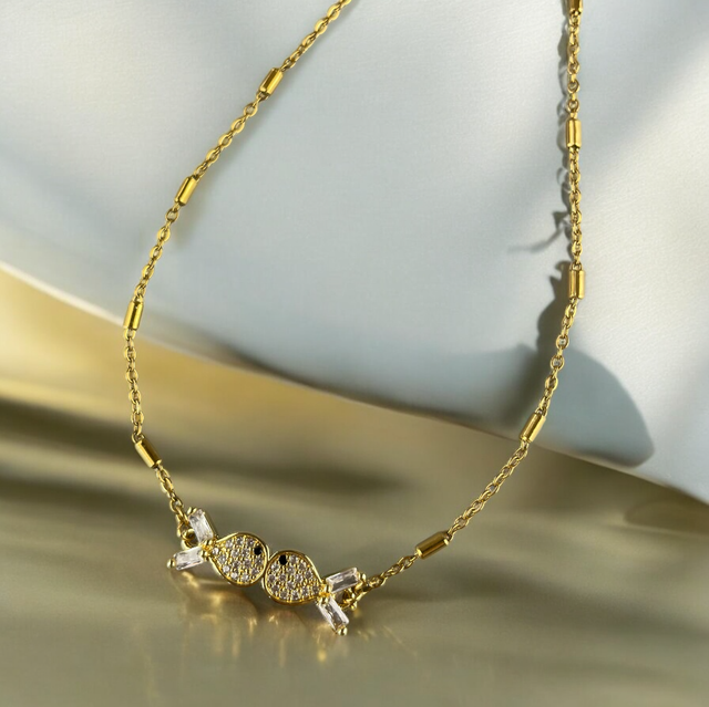 "Collier choker chaîne fine et poisson zircon – Acier inox & or 18K"