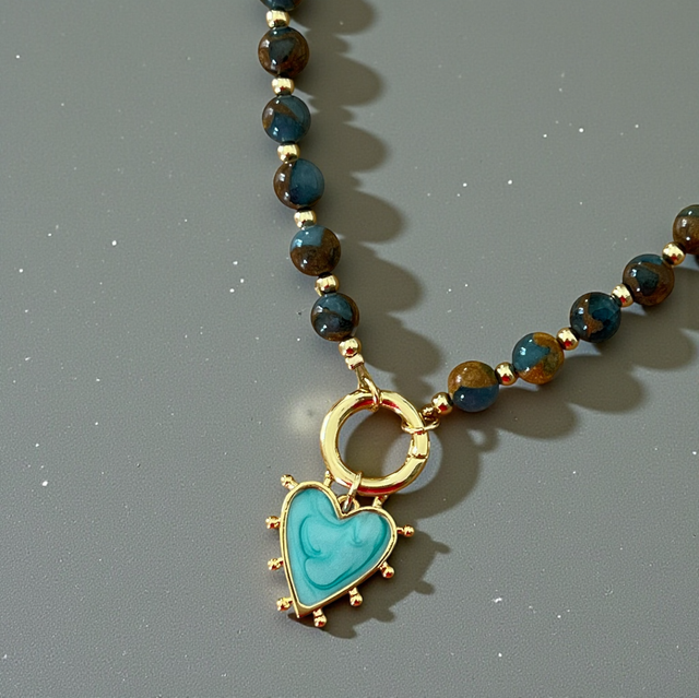 • Cœur bleu turquoise émaillé rempli d’or 18K