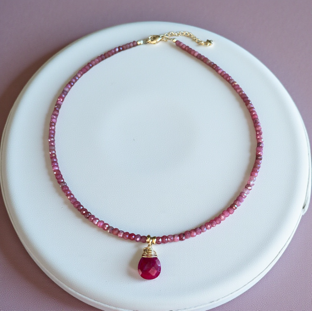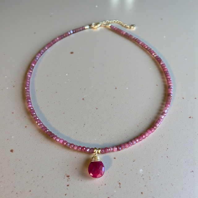 Laissez-vous séduire par l’élégance douce et féminine de ce collier en rhodonite facettée, une création artisanale signée Sandja Créations. Chaque perle révèle des nuances naturelles uniques, mises en valeur par un sublime pendentif en briolite de sillimanite, pierre lumineuse qui capte la lumière et attire le regard. Un bijou délicat, chic et irrésistible, pensé pour sublimer votre style au quotidien comme lors de vos plus belles occasions.