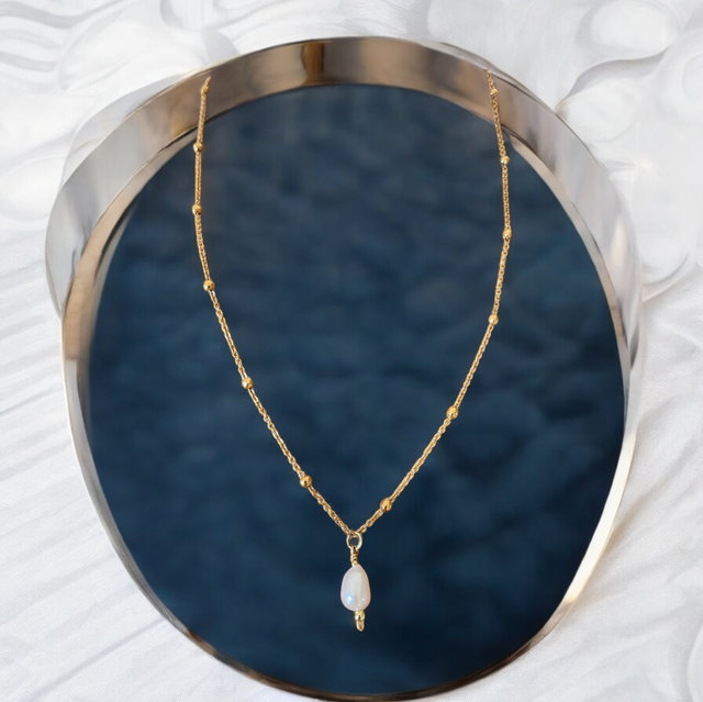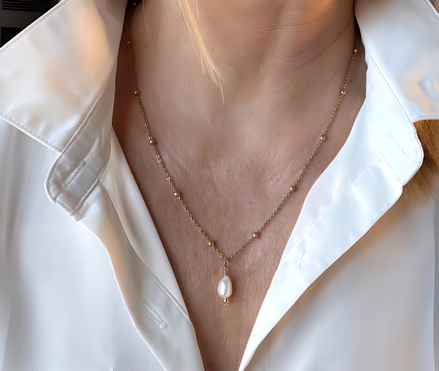 "Collier Chaîne Satellite & Pendentif Perle d’Eau Douce"