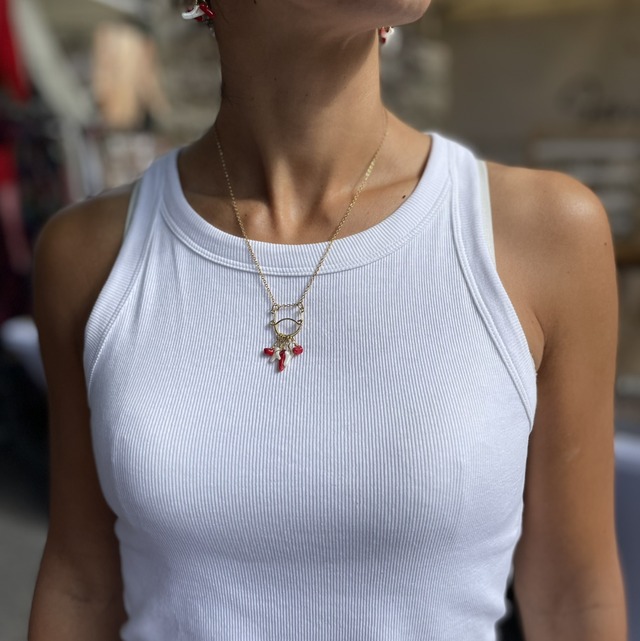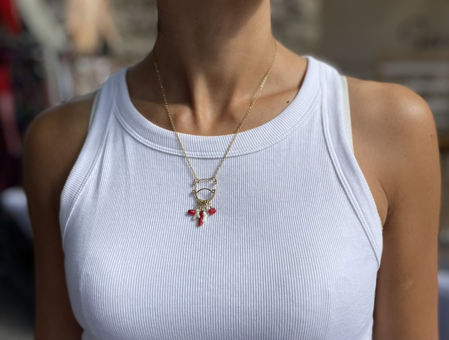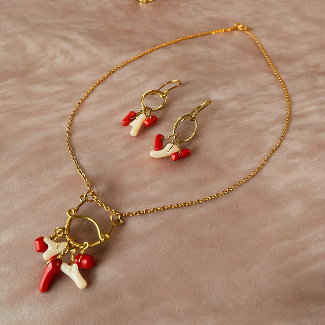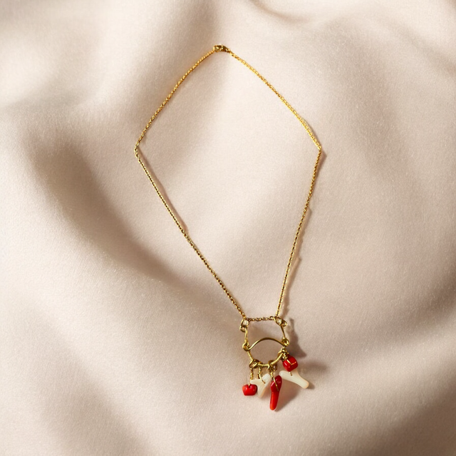 Ce collier élégant met en valeur un pendentif raffiné, orné de breloques en perles naturelles de bambou de mer rouges et blanches, sublimant votre décolleté avec sophistication. Sa chaîne fine en acier inoxydable et son support de pendentif en laiton anti-ternissement en font un bijou intemporel et lumineux.