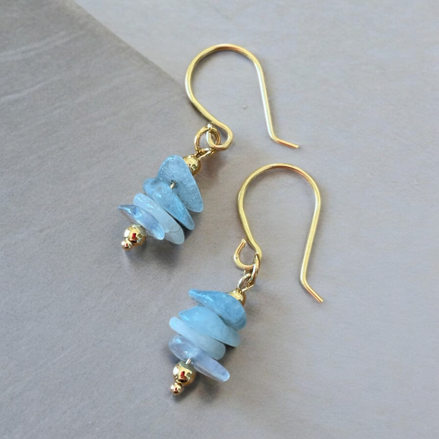 Matériaux : Laiton anti-ternissement, pierres naturelles d’aigue-marine