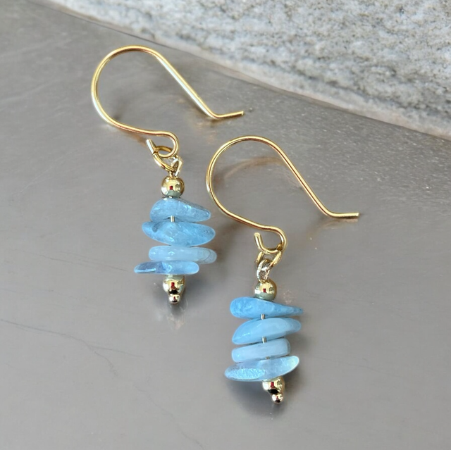 Ces boucles d'oreilles sur crochet en laiton anti-ternissement sont un véritable bijou d’élégance. Leurs pendants longs de 2,5 cm, composés de pépites d'aigue-marine naturelle, apportent fraîcheur et sophistication à votre look. Un accessoire délicat pour sublimer votre style au quotidien.