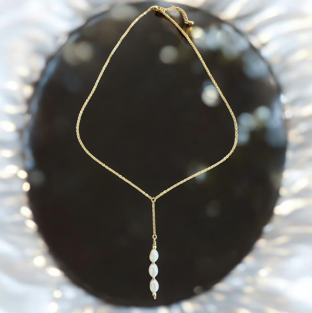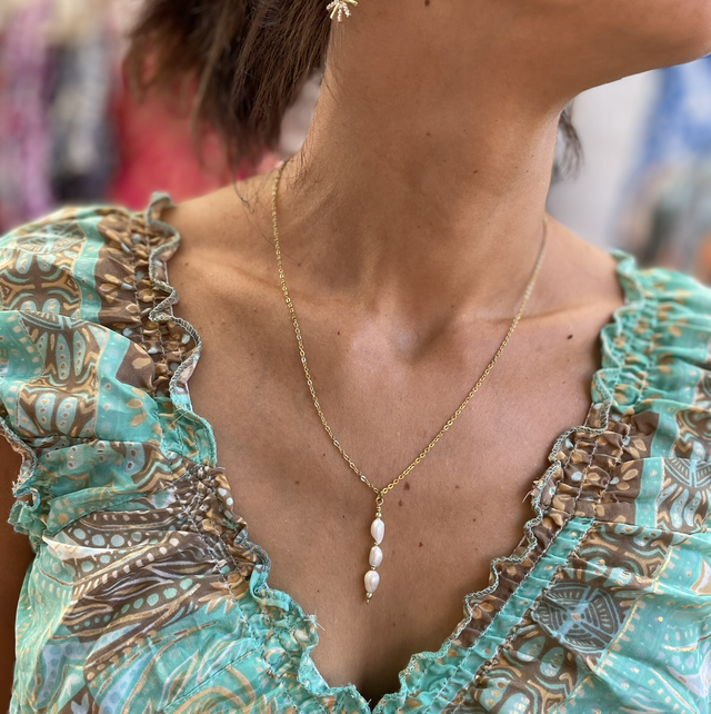 Collier chaîne Cravate avec pendentif en perles d’Eau Douce
