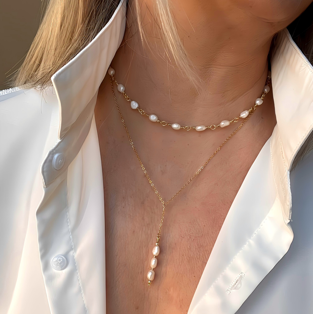 "Collier Chaîne Cravate en Perles d’Eau Douce"